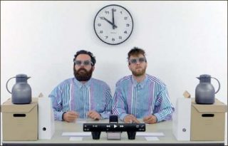 On devine à travers ces performances stéréotypées, où s’orchestrent des mouvements mécaniques et répétitifs confinant à l’absurde, une représentation critique de la société contemporaine. Tom Castinel et Antonin Horquin expriment non sans humour l’uniformisation et l’instrumentalisation des êtres aujourd’hui en vigueur dans les domaines de la communication, du travail et du commerce.