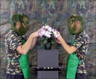 A l’assaut et Centrale vapeur obéissaient à un rythme binaire. Les vidéo-performances le prolonge par les effets de symétrie et d’asymétrie des corps de Tom Castinel et Antonin Horquin et par le dédoublement des espaces. Dans ces mises en scène, le corps est réifié par l’objet qui l’accompagne, comme l’était le mot dans la forme littéraire: Tom Castinel et Antonin Horquin se soumettent à des gestes mécaniques conditionnés par l’usage des objets.