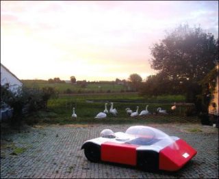 La galerie Robespierre de Grande-Synthe décrypte le processus artistique de Panamarenko en prenant pour exemple deux bolides autonomes Hinky Pinky Prova Car et la Thermo Photovoltaic Energy Convertor.