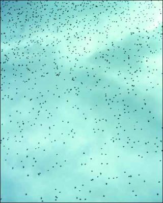 Cela est vrai également des autres séries. De nouvelles frondaisons arborées qui font le lien avec celle de l’entrée précédemment décrite, des migrations volatiles, des horizons aquatiques, autant de motifs qui permettent cette fusion du détail dans l’ensemble, cette extinction de la partie au profit du tout, un tout presque abstrait, aplani, mais aussi affadi.