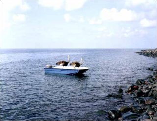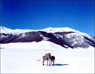 Les zèbres, les autruches, les ânes répondent “présent” à l’invitation de l’artiste. Paola Pivi se tranforme en nouvelle Noé et transfuge tout son petit monde sur des barques avant le Déluge. Elle photographie un âne au milieu de l’eau, deux autruches dans la même situation. L’élément liquide est très présent dans cette série.