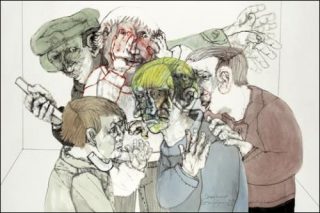 Sergio Moscona dépeint avec perplexité et sans concession la société dans laquelle il vit. Ses œuvres se situent à la jonction entre le chaos social réel et le chaos artistique. Il met en scène les forces sourdes à l’œuvre, génératrices d’angoisse, destructrices du lien social. En effet, la violence, les excès, la misère sociale compromettent la survie de la subjectivité des individus. Sergio Moscona dénonce cette réalité globale et espère voir un jour Paquito se délivrer de ses cauchemars et réclamer son droit au rêve.