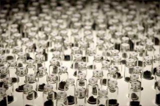 — Estefania Peñafiel-Loaiza, Sans titre (figurants), 2009. Action, installation, archive: 200 fioles en verre, gomme à effacer, journaux. Dimensions variables