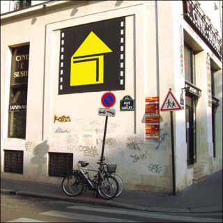 A l’instar des démarches actuelles de communication, l’artiste recherche un espace d’affichage pour son tableau. Elle imagine son inscription dans l’espace public immédiat — disons en bas de chez elle. Et à défaut d’obtenir les autorisations pour le faire réellement, elle tire une image de cette simulation.