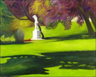 Le paysage est tellement vaste, infini que c’est l’émotion colorée ou atmosphérique qui va animer l’artiste. Dans un parc qui a quelque chose de fabriqué, maîtrisé, calibré, social, construit pour la promenade et ponctué par des sculptures souvent très kitschs comme à San Francisco (un parc immense, des serres, des zones africaines, un jardin japonais) ou à Lausanne (le parc du Denantou), les œuvres du sculpteur Marcel-Edouard Sandoz côtoient les bosquets placés de telle sorte que le regard suit certaines perspectives bien précises, superbe témoignage des jardins paysagers comme ils étaient imaginés au XIXe siècle.