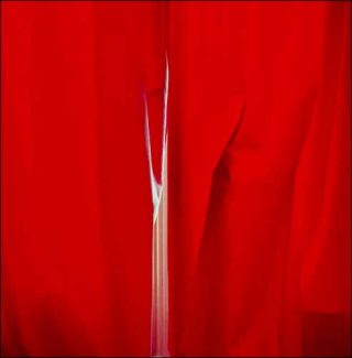 Alors que dans les travaux religieux photographiés, la lumière vient lécher les arêtes des sculptures, ici elle est remplacée par une ligne de craie rouge, par un tuyau à la couleur d’argile. La couleur ici est une rampe que l’on peut emprunter pour descendre dans les abysses des profondeurs de notre temps.