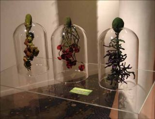— Sophie Dalla Rosa, Curiosités, 2008. Installations crochet et guipure, caillou et verre.