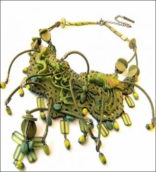 — Camille Lescure, Collier, collection Les jardins de Rouffiac, 2008.— Cécile Boccara, Tilleul, 2008. Collier en tissu laine et soie, fil de soie perles en mousseline de soie.