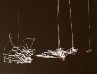 Avec leurs étranges formes tombant du plafond, presque des gribouillis en suspension, Berdaguer & Péjus ont tenté l’aventure d’une retranscription visuelle et plastique des Paroles martiennes (2012) d’Hélène Smith, récits somnambuliques consignés en son temps par le psychologue Théodore Fournoy (1854-1920). Avec l’aide du Laboratoire Parole et Langage d’Aix-en-Provence (Cnrs Universités de Provence et de la Méditerranée), les artistes ont fait relire ces propos à une comédienne dont l’enregistrement par des capteurs a permis une traduction en des diagrammes en 3D, matérialisés ensuite grâce au procédé de stéréolithographie qui leur est familier. Ils donnent ainsi un aspect solide et visuellement perceptible à une «chorégraphie buccale» normalement insaisissable, pour ne pas dire invisible.