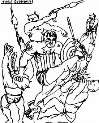 Dans le registre des comics, le musicien de la scène rock Daniel Johnston décline avec vivacité des super héros américains, en particulier le célèbre Captain America inventé par Jack Kirby.
