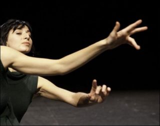 Ambra Senatore aime brouiller les pistes. Lentement, des bascules, des torsions étranges parcourent ce corps. Dans un rayon de lumière, la silhouette s’anime: petite robe sage, rouge à lèvres, coupe au carré, des chaussures à talons qui mènent au déséquilibre. Une aura fictionnelle l’entoure avant même que la danse ne commence, subtil équilibre entre séduction et pudeur, qui n’est pas sans rappeler Rosas danst Rosas. A elle seule, la danseuse enclenche sur scène une dynamique enjouée proche de l’esthétique des années 80.