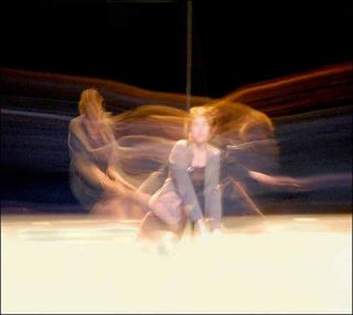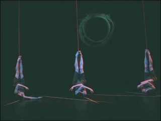 Patrick Bonté. Lorsque nous avons voulu parler de la gémellité, nous avons travaillé avec des mannequins articulés. Nous n’avons utilisé cette « technique » qu’une seule fois, parce qu’elle nous semblait adéquate. Lorsque nous avons travaillé sur la thématique du portrait, en opposant le moment où le portrait est né, à la Renaissance, et la façon dont aujourd’hui, notre portrait est tiré, en permanence, par les caméras de surveillance, nous avons utilisé la vidéo. C’était dans Simonetta Vespucci, que nous avons créé il y a maintenant une dizaine d’années. Pour Khoom, créé en 2007, les danseuses travaillent accrochées à une corde, selon une technique de danse-voltige mise au point avec Olivier Farge. Ce travail crée une contrainte très spécifique au niveau du mouvement, particulière à ce spectacle…