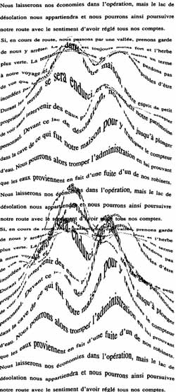 Dans l’œuvre de ce « conteur et troubadour des temps modernes », comme le surnomme Jérôme Sans, il est donc question de fiction au même titre que d’un questionnement de l’espace sémiotique dans ce que celui-ci offre comme plasticité et interactivité. Le texte, dans son pouvoir narratif, explore le réel et fait retour sur lui-même — la rotation étant, en effet, une figure récurrente des dispositifs — pour devenir l’objet même de l’investigation. À l’aune de l’ère duchampienne, ne subsiste du rétinien que la part lisible prise dans les rets d’un dispositif fictionnel qui réifie le texte jusqu’à son illisibilité, sous l’action du regardeur-lecteur par qui et pour qui l’œuvre s’active.