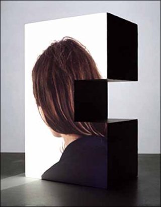 Un immense fragment de cheville occupe ainsi la surface blanche d’un cube éventré par une ouverture : transpercé par ce creux, modelé par les trois dimensions du cube, ce morceau de corps devient méconnaissable.