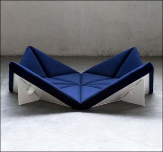 innovante, plaçant le confort et le bien-être au coeur du processus, autorisent aussi toutes les combinaisons possibles d’agencements de l’espace devenu malléable. En effet, le principe de modularité des formes et un fonctionnalisme sensuel président à leur conception, dans un geste artistique radical. Les voyages en Scandinavie (1951) et au Japon (1963) marquent durablement Pierre Paulin et façonnent ses choix esthétiques tels un manifeste, qu’il a même appliqués à la commande pour les appartements privés de Georges Pompidou au Palais Présidentiel de l’Elysée en 1971 (encore plus audacieuse que celle « moderne certes mais classique » passée en 1983 par François Mitterrand): le corps doit fusionner avec ce qui l’entoure, ou plutôt l’inverse; le sol, les murs & le plafond sont pensés comme un tout harmonieux où un centre de gravité plus bas est souvent privilégiée, à l’image des intérieurs japonais ou des tentes nomades.