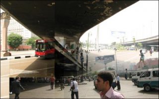 Renaud Vercey se rend au Caire en mai 2010, soit une centaine de jours avant la révolution. Il réalise des photographies dans les rues du Caire. Il choisit un nœud autoroutier en dessous du pont du 6 octobre qui mène à la place Tahrir, l’endroit où les minibus amènent les cairotes de la banlieue vers le centre-ville. Prendre des photos dans l’espace public est dangereux. Des étudiants en architecture ont été arrêtés par la police, alors qu’ils photographiaient des bâtiments pour illustrer un exposé.