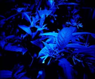 Mais ce geste de conversion d’un état à un autre se rend d’autant plus flagrant dans l’installation Mesk-ellil qui nous attend donc au sous-sol de la galerie. Le léger parfum que l’on percevait sitôt le seuil de la galerie franchi, s’intensifie en une forte odeur de musc. Des rideaux noirs obstruent la verrière de la galerie, ne laissant filtrer aucune lumière naturelle. Seuls quelques spots bleus assurent un peu de visibilité. Ils projettent toutefois sur les murs de la galerie un halo inquiétant, où se reflètent les ombres de quelques câblages électriques semblables à des monstres ou à des formes fantasmagoriques. On passe alors de la lumière aux ténèbres, de l’espace du «white cube» à la pénombre d’une installation composée de verres teintés abritant quelques plantes soumises à un éclairage artificiel. Se trouve-t-on dans un laboratoire de manipulation génétique? Hicham Berrada joue-t-il aux apprentis sorciers?