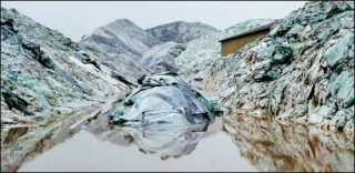Eric Aupol entreprend un voyage en solitaire dans ces accumulations inhabituelles. Elles impressionnent par leur gigantisme et barrent complètement l’horizon pour celui qui s’y promène. Il tente de saisir l’étrangeté et la démesure de cet environnement artificiel. Bien qu’il soit le fait d’une production humaine, l’homme n’y trouve pas sa place. Une cabane ou un arbre en arrière-plan servent de repère d’échelle.