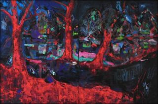 Cette nouvelle série «Paysages / Extérieur-Nuit» révèle en quelque sorte les dessous de sa peinture, sa part d’ombre, celle qui traverse depuis longtemps son travail, en peinture, dessin, photographie et en céramique. Ombre portée, comme l’on porte un vêtement. Michaële-Andréa Schatt soulève le voile. Il y a dévoilement.