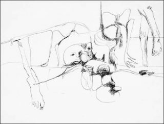 Mais ici «Eros» ne peut véritablement surgir ici qu’à travers la puissance de «Thanatos»: confrontée à sa mort imminente, Alina Szapocznikow a créé des scènes intimes qui nous transportent dans l’au-delà , comme si le crépitement de la chair était le dernier témoin d’une vie en sursis. Les «Paysages humains» sont donc à découvrir tels des memento mori, des vanités qui rappellent que l’homme est voué à mourir. Ces dessins sont comme de douces injonctions à partager le même destin, à affronter cette réalité dans ce qu’elle a d’incisif mais aussi de sensuel – une douleur langoureuse. Ou, pour reprendre les mots de Szapocznikow, elles ont pour but d’«exalter l’éphémère, dans les replis de notre corps, dans les traces de notre passage.».