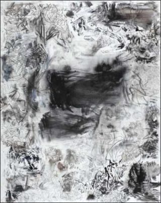 Quant à la dénomination plutôt générale de «Paysage», il s’agit ici, par le biais de la structure carrée du tableau, de brièvement faire allusion à la tradition du genre, mais qui est dans ce cas déformée par la prolifération excessive des signes graphiques de provenances très diverses. Même lorsque ce patchwork prolifique de multiples registres élude le recours aux éléments iconographiques les plus référentiels, il en permet cependant les éventuelles présences fantomatiques, elliptiques, dans un effet de résonances et références indirectes.