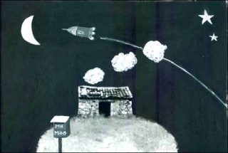 — la Lune, série « Aventure de proximité », 2004. Gouache sur photo noir et blanc. 80 x 100 cm.