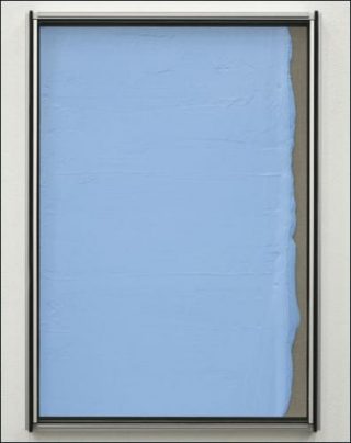 Principalement centrée sur la peinture, la nouvelle exposition de Pedro Cabrita Reis à la galerie Nelson-Freeman réunit un ensemble d’œuvres réalisées en 2011. Deux monochromes associant acrylique sur toile, double vitrage et cadre en aluminium: Les Bleus #1 et Les Verts #1.