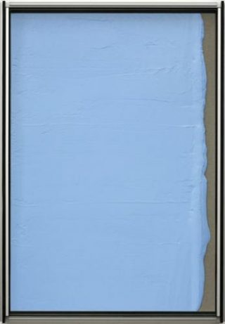 — Pedro Cabrita Reis, Les Bleus #1, 2011. Aluminium, double vitrage, acrylique sur toile. 35 x 64 cm.