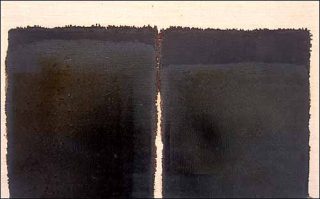 Cette démarche vient buter contre notre propension toute postmoderne à voir dans ces toiles des images. Portes ou écrans, ces résidus figuraux leur donne une forte dimension spirituelle ou mystique, comme chez Rothko ou Klein. Mais on pourra leur trouver d’autres filiations avec les grands dessins noirs de Richard Serra ou certaines compositions de Martin Barré.