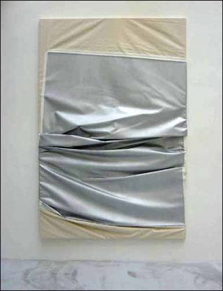 Sur de grands châssis rectangulaires sont réalisés de grands monochromes à l’aide d’une peinture aluminium. Ils sont de même taille, de même teinte. Cet élément de base qu’est le monochrome sert de point de départ à une autre variation autour de la destruction, la mutilation du tableau. La toile est arrachée de son support, froissée, découpée, repliée, éventrée, etc. Ce traitement donne lieu a de nouvelles propositions plastiques et spatiales.