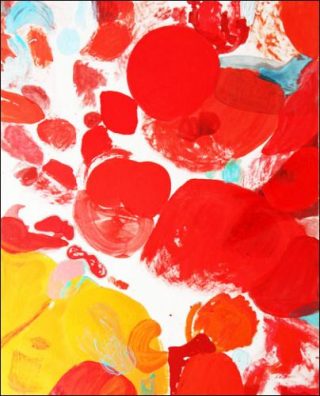 Placées pendant plusieurs semaines au contact des éléments naturels, les peintures se sont chargées au fil du temps de modifications spontanées: brûlures du soleil, jaunissement de l’huile, traces de la capillarité de l’eau de pluie chargée de terre ou des insectes qui les butinent…
