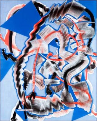 Les textures s’y mêlent dans un chevauchement et une sinuosité de bandes colorées. Seulement ces bandes colorées brossée à la surface coïncident paradoxalement avec le fond: le hasard qui anime la surface au premier plan se soumet à l’intensité du fond qui émerge, traverse et dépasse les couches picturales. Dans une sorte d’énigme, la peinture est ramenée à la surface et semble flotter au-dessus d’une certaine profondeur. «Je peins les tableaux en partant de leur envers»: la profondeur a le pouvoir de s’élever et remonter à la surface.