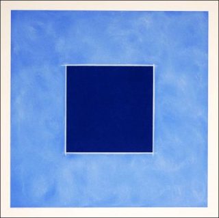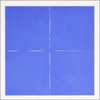 Les dynamiques dans le carré provoquées par différentes sortes de coupures horizontales et verticales, les couleurs posées en aplats saturés, qui semblent en apparence lisses, ainsi que les bords des tableaux peints, prolongent la toile et proposent une dimension expansive, en invitant notre imagination à poursuivre la construction.