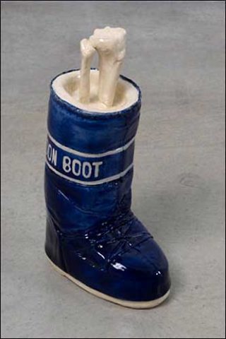 — Moonboot, 2008. Céramique bleue et blanche.
