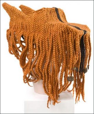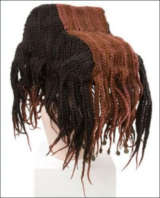 Mais au-delà de l’état de l’Afrique, cet ensemble de perruques qui nous renvoie à un autre salon, de coiffure, cette fois, c’est un regard sur l’Afrique que porte l’artiste, en nous proposant une double lecture de ces objets insolites. La première évoque les rêves ordinaires de citoyens ordinaires qui se réalisent à travers les signes extérieurs de leurs désirs. Je pense à ce roman dont le nom de l’auteur m’échappe qui s’intitulait: Ma Mercédès est plus grosse que la tienne. Compétition et machisme. Le plus drôle, c’est que ce soit à travers des attributs féminins que s’illustre l’intention. Des atours qui, et voici le sens profond, qui évoque le travestissement et le masque. Les tresses artificielles font depuis, quelques années, fureur en Afrique et il est devenu rare aujourd’hui de voir des femmes porter leurs véritables cheveux. Mais au-delà des femmes, c’est une société toute entière qui est visée.