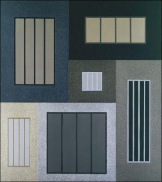 Les formes rectangulaires et carrées et les barreaux de cellules sont en aplats de couleurs primaires et contrastées. Des Å“uvres les plus anciennes harmonisant les gris bleutés et dorés au noir, au plus récentes assemblant des couleurs primaires et fluorescentes et criardes, l’œuvre passe d’un aspect terne à un aspect quasi psychédélique, témoignant d’une inspiration croissante puisée dans le Pop art. Quant aux motifs, ils font davantage référence aux signalétiques urbaines, aux codes des médias et les technologies des sociétés de consommation. L’utilisation de matériaux industriels, «Day-Glo» ou «Roll-a-Tex» (médium épaississant ou couleur synthétique fluorescente), tendent à accentuer le caractère impersonnel des toiles.