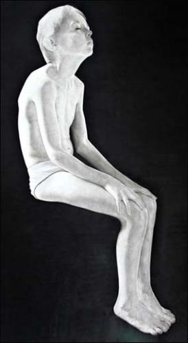 Clément est un jeune garçon représenté assis et les yeux fermés. Si son regard — le miroir de l’âme — ne nous est pas donné à voir c’est pourtant sa stature et sa présence particulièrement forte qui captive le regardeur. La peau seule nous renvoie une histoire.