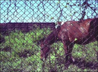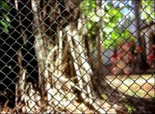 Le grillage sert de séparation entre deux espaces: celui dans lequel se trouve le photographe, et a fortiori le spectateur, et l’autre, placé derrière. Il pose la question de l’enfermement, le champ de vision ne permettant pas de savoir si le photographe-spectateur n’est pas encerclé par ce même grillage, qui vient remettre en question le (libre) droit de regard du spectateur.