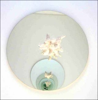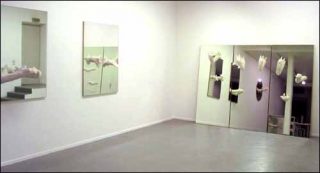 En effet, du miroir jaillissent ces formes blanches, granuleuses, situées précisément au point de rencontre entre le reflet, le toucher, le regard et le souvenir matérialisé de l’instant du moulage, de l’empreinte. L’espace est tendu entre ce qui surgit et ce qui est posé avec une délicate ironie. Car l’expérience de l’artiste sur le visible (mis en scène par le moulage) indique les liaisons possibles entre des lieux différents (profondeur du miroir et volumes des formes de plâtre, verticalité et horizontalité dans toutes les œuvres, à l’intérieur du cadre créé par le miroir ou à l’extérieur de celui-ci).