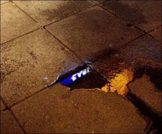 A la surface de l’eau, les images de Rut Blees Luxemburg capturent par bribes les lettres lumineuses des stations Green Park, Royal Park, Southgate… La luisance d’une flaque d’eau ou du bitume mouillé crée à chaque fois un cadre d’observation imparfait où se reflète la réalité. Les «Piccadilly’s Peccadilloes» sont littéralement les peccadilles à connotation «légère» de Piccadilly. Rut Blees Luxemburg met en lumière ces insaisissables erreurs d’appréciation que commet le regard lorsqu’il se pose sur les miroitements nocturnes de la ville.