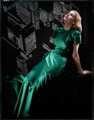 Le portrait de Karin Van Leyden présente quant à lui un contraste saisissant entre la chevelure blonde vivement éclairée du modèle, et le reste du décor plongé dans l’obscurité. Le goût d’Erwin Blumenfeld pour les femmes se confirme alors dans les portraits de quelques grands noms du cinéma, du music-hall ou des cabarets. Le regard pénétrant de Jane Fonda fait ainsi écho à la brûlante Marlene Dietrich lovée dans sa fourrure et, à la sobriété d’une Juliette Gréco vêtue toute de noir, répondent le faste et la coiffe d’Audrey Hepburn, dont le profil se reflète à l’infini dans un subtil jeu de miroirs.