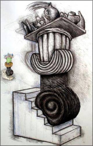 Cette simple remarque montre, si on ne le savait déjà , que l’actualité occupe la majeure partie de notre temps, elle est le but de notre activité, tant l’avenir ne peut être autrement atteint que par ce présent perpétuel. En réfléchissant à ce paradoxe cocasse, l’idée (pas nouvelle du tout mais c’est la dernière en date) est venue à Dominique Angel de réaliser une installation en intégrant toutes les périodes de son travail d’artiste. Sous-titre de l’oeuvre, puisqu’il s’agira d’une Pièce Supplémentaire: Rétrospective.