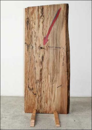 — Une Blessure par balle, 2007. Technique mixte, bois. 134 x 55 x 78 cm