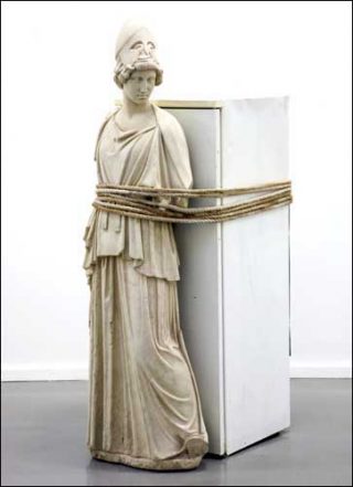 — The Ghost in the machine, 2005. Réfrigérateur, marbre et corde. 190x100x100cm