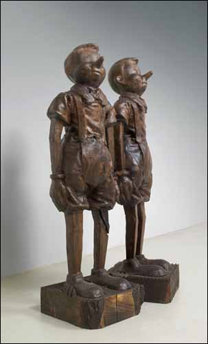 — Two Boys Looking, 2006. Bois peint. 200 x 147 x 76 cm