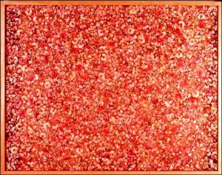 — Sans titre (TBC), 2002. Copeaux de crayons, plexiglas, bois. 92,50 x 117,50 x 10 cm.