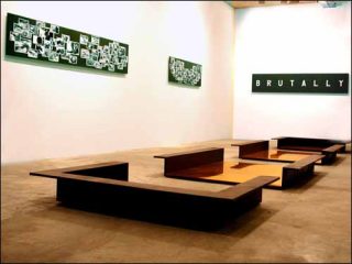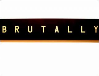 Sur le mur du fond, un panneau similaire porte l’inscription « Brutally », écrit à l’endroit cette fois.