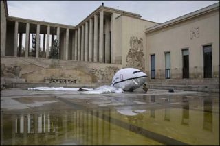 Si l’élément commun à toutes les images est l’avion lesté, celui qui change à chaque «atterrissage» est l’environnement — monuments historiques à Paris, piste d’atterrissage à Zürich — et tous deux acquièrent une égale importance pour l’artiste.