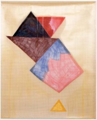 Il est ainsi des formes géométriques de Athene Galiciadis: elles renvoient souvent à des éléments organiques avec un érotisme cosmique quand ce n’est pas une dimension carrément scatologique. Une foule de symboles conflictuels peuvent s’y greffer, les supports qu’elle utilise peuvent aller de la terre au bois, de la céramique au papier, en passant par de la toile de jean. Et malgré le papier quadrillé, l’ensemble est loin d’être mathématique: il porte toutes les traces du geste, des pliages et des déchirures, des coulures et des tâches, de l’épuisement du crayon et des changements abrupts de couleur. Nous y observons l’irrationalité d’une main qui relie les formes et la puissance de l’inconscient.