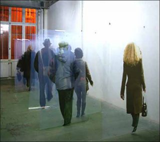 — Escape, 2007. Aluminium, adhésif, sac plastiques, PVC. 500 x 250 cm.